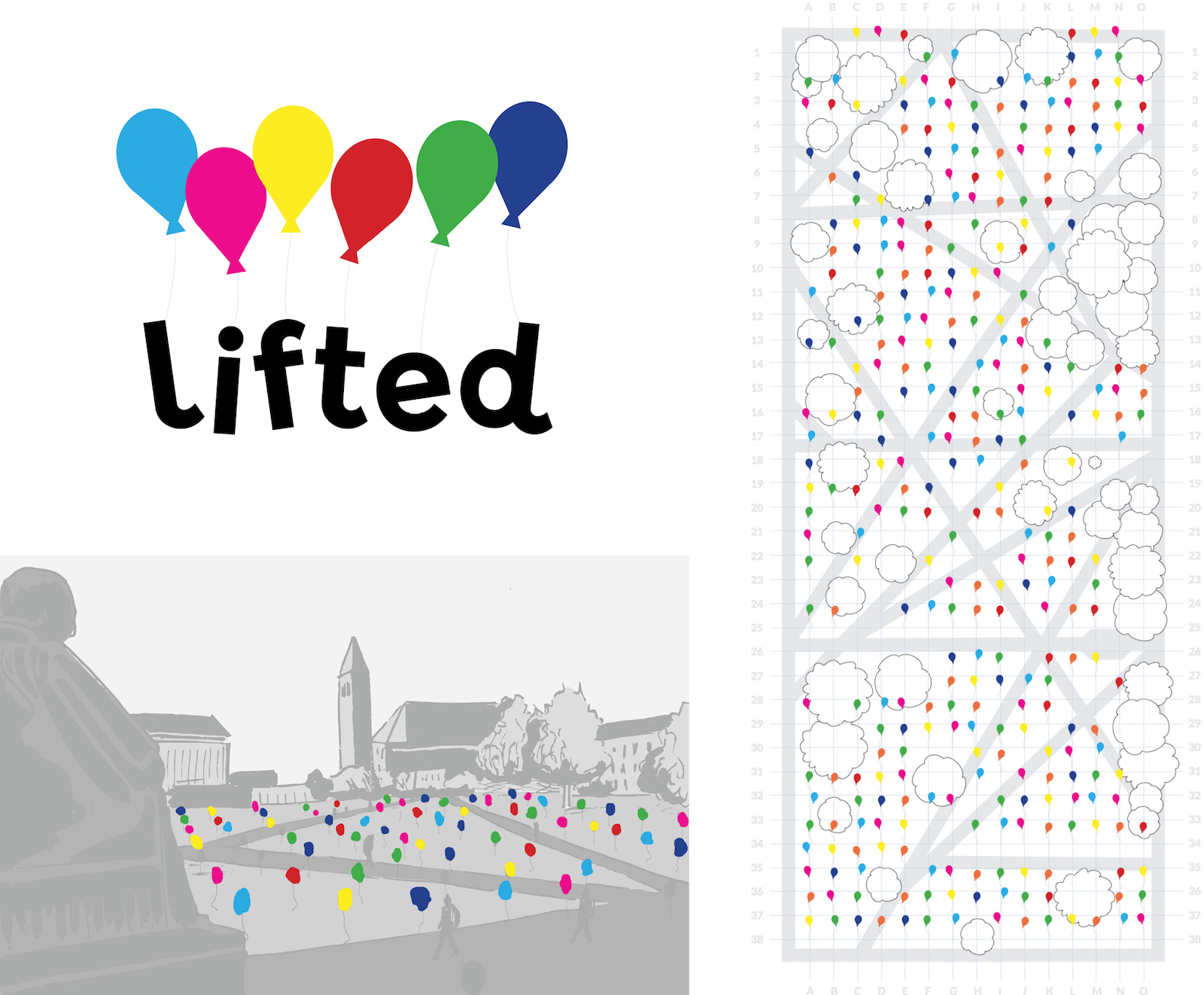 Lifted was a creative presentation of the strength and interconnectivity of the Cornell community with hundreds of balloons on the Arts Quad, each dedicated by a Cornellian to another Cornellian who has lifted their spirits. With my time coming to a close at Cornell, Lifted was the culmination of my gratitude for all the university had provided me in my undergraduate education. As the creator and organizer of the project, I completed all its branding and graphic designs and coordinated its one-day installation, which captured the attention of the university and inspired a greater sense of community.